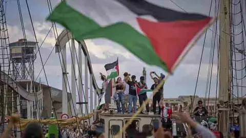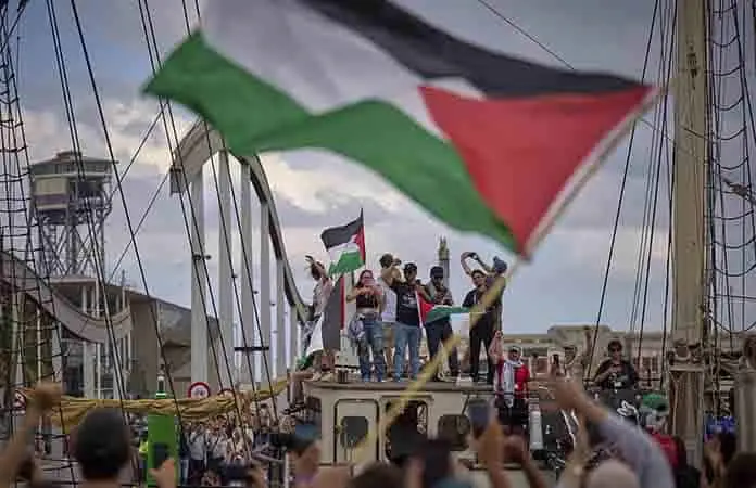 En la misma embarcación viaja la exalcaldesa de Barcelona Ada Colau, que ha recordado que la capital catalana fue “la primera ciudad europea en romper relaciones con Israel”.