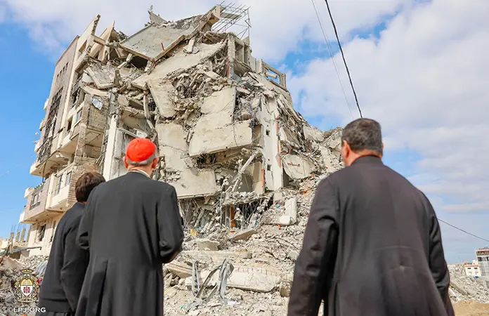 El cardenal también recorrió un almacén de ayuda humanitaria gestionado por Catholic Relief Services en el barrio de Al Zaytoun, en el sureste de Gaza, así como el hospital Al Ahli, de tradición baptista, situado en la Ciudad Vieja. La visita incluyó además el Hospital Jordano, en la zona de Tal al Hawa, y áreas cercanas afectadas.