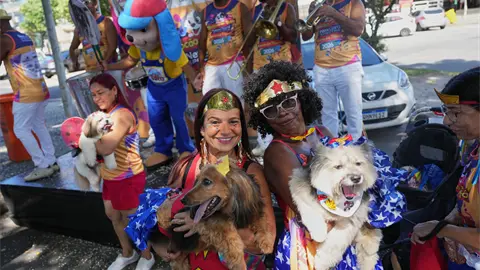 Unas 300 personas y sus mascotas se congregaron en el barrio de Barra da Tijuca, en la zona oeste de Río. Cantaron y bailaron al son de canciones de Carnaval de estilo antiguo mientras sus mascotas mantenían las patas protegidas a la sombra, ya que los termómetros en la ciudad marcaban 30 grados Celsius (86 Fahrenheit).