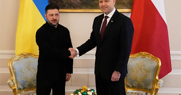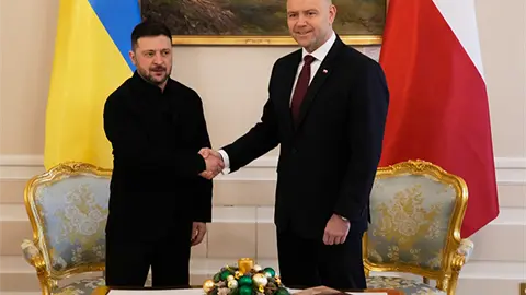 El presidente ucraniano Volodímir Zelenski fue recibido por su homólogo polaco, Karol Nawrocki, en el Palacio Presidencial para una visita destinada a asegurar que las relaciones se mantengan estables, independientemente de cualquier cambio de poder en Varsovia.