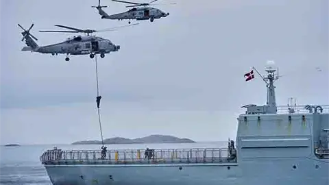 Dinamarca dijo que en el verano de 2025, las Fuerzas Armadas Danesas reforzaron su presencia y la actividad de ejercicios en Groenlandia y sus alrededores con diversas iniciativas y capacidades, incluyendo contribuciones de aliados como Alemania, Francia, Suecia y Noruega. Las iniciativas implicaron el despliegue de capacidades en el mar, la tierra y el aire, así como ejercicios relacionados con la protección de la infraestructura crítica de Groenlandia.