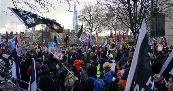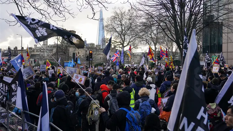 Políticos de varios partidos se unen a protesta por embajada china en Londres antes de decisión gubernamental.