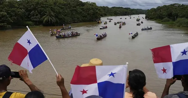 Panamá.- Decenas de botes con alrededor de 200 personas, en su mayoría campesinos portando banderas panameñas, recorrieron el viernes el cauce de río Indio para protestar en contra del embalse que planea construir el Canal de Panamá para resolver la problemática de la falta de agua que enfrenta la vía marítima, así como la población.