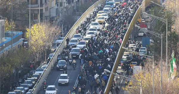 Las protestas del lunes fueron las más grandes desde 2022, cuando la muerte bajo custodia policial de Mahsa Jina Amini, una mujer de 22 años, desencadenó manifestaciones a nivel nacional. Fue arrestada por la policía de la moral por supuestamente no llevar bien puesto el hijab.