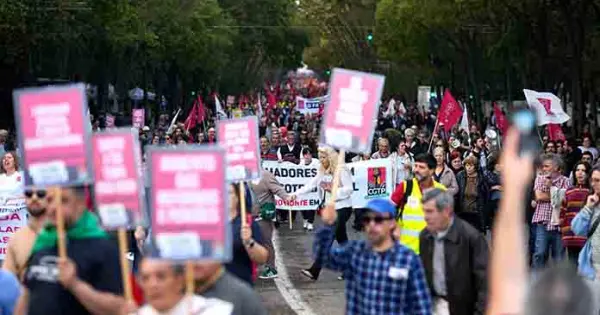 La convocatoria la realizó en la turística plaza de los Restauradores, al final de la marcha, organizada bajo el lema ‘Todos a Lisboa’ y en la que participaron tanto trabajadores del sector privado, que partieron de la plaza de Saldanha, como del público, que comenzaron desde el complejo urbanístico de Amoreiras.