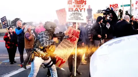 San Francisco, Cal.- Agentes federales de inmigración fueron recibidos con protestas el jueves en el Área de la Bahía de San Francisco mientras se dirigían a una isla artificial de propiedad gubernamental de un siglo de antigüedad que alberga una base de la Guardia Costera de EU.