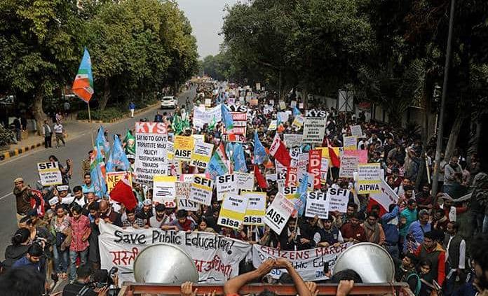 Durante la protesta en Nueva Delhi, los estudiantes corearon frases como “Luchen, luchen, luchen por su derecho a estudiar” y “Sigan luchando, sigan muriendo”.