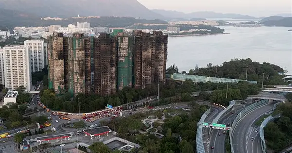 Hong Kong.- Elementos de bomberos de Hong Kong encontraron decenas de cuerpos más el viernes durante una búsqueda intensiva apartamento por apartamento en un complejo residencial en que un incendio arrasó con siete de los ocho edificios y las autoridades arrestaron a otras ocho personas involucradas en la renovación de las torres.