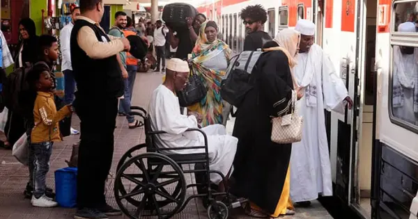 El Cairo, Egipto.- Cientos de personas desplazadas por los combates en Sudán se reunieron el lunes en la estación central de trenes de El Cairo para comenzar un viaje gratuito de regreso a casa.