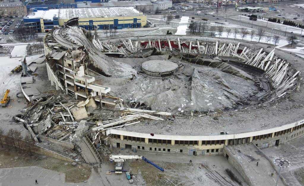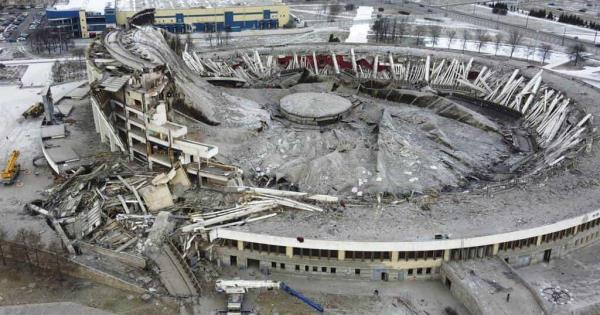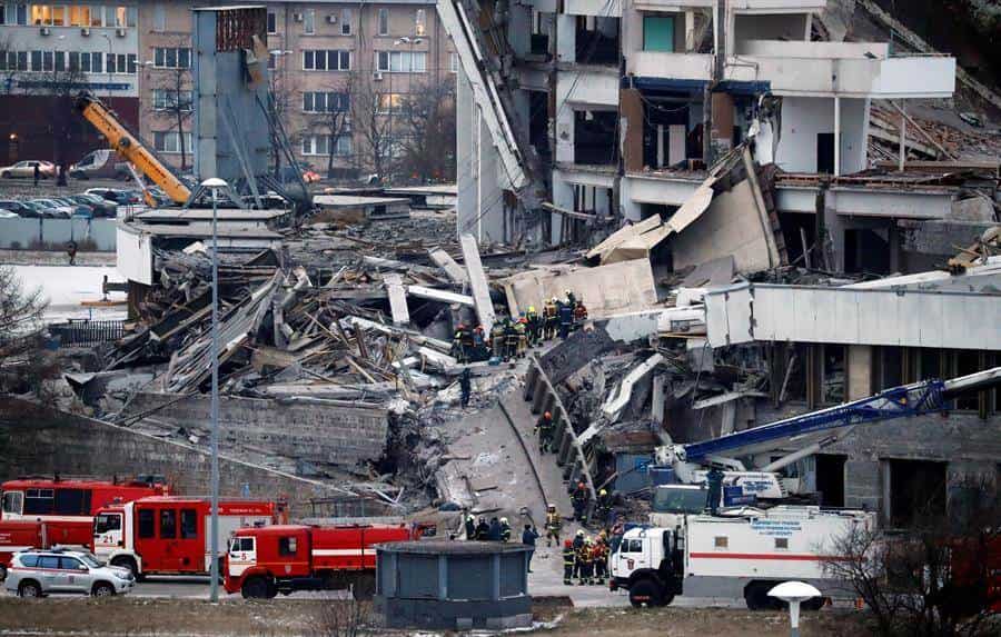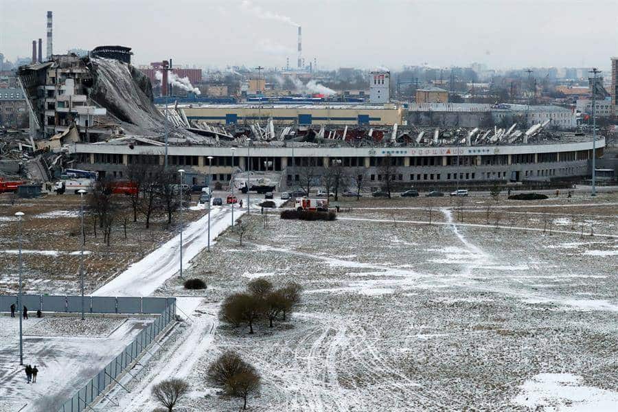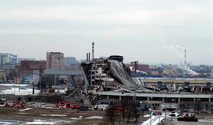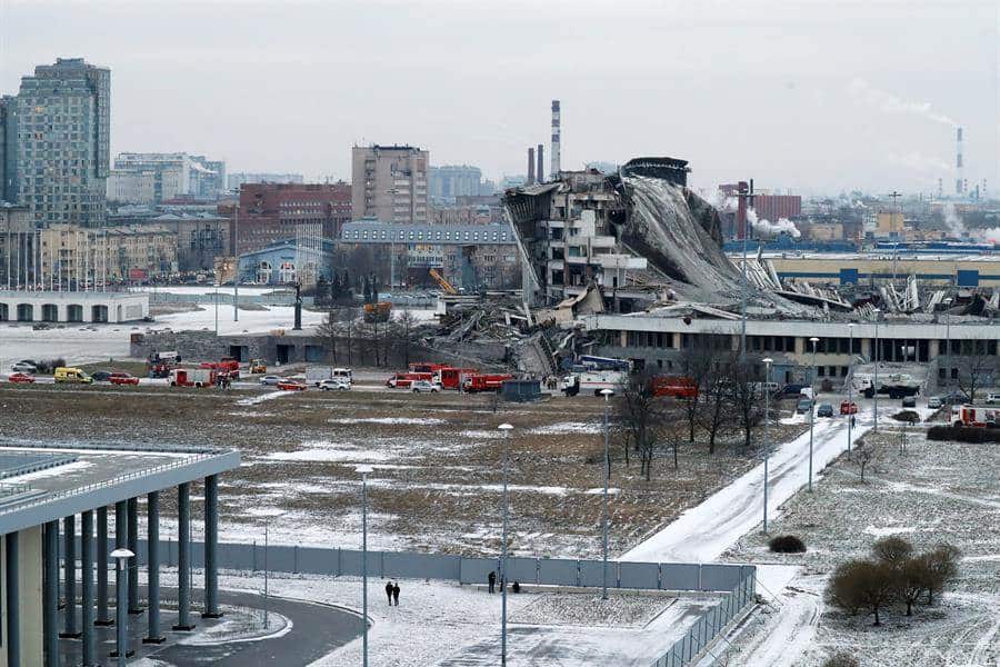 Parte del techo y la estructura de un complejo deportivo y de conciertos colapsó en San Petersburgo, Rusia, este viernes.