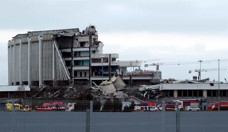 El techo del edificio se derrumbó durante el desmantelamiento, y no se descarta que habría gente atrapada debajo de los escombros, según los informes.
