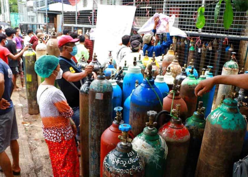 En la última semana, la tasa de muertes per cápita en Myanmar superó las de Indonesia y Malasia, convirtiéndose en la peor en el sudeste asiático. El vapuleado sistema de salud del país se está viendo abrumado por los nuevos pacientes con COVID-19. Los suministros de oxígeno escasean y el gobierno ha restringido su venta privada en muchos casos, diciendo que trata de prevenir acaparamiento, pero eso ha causado denuncias de que las reservas se están asignando a partidarios del gobierno y los hospitales administrados por las fuerzas armadas.
