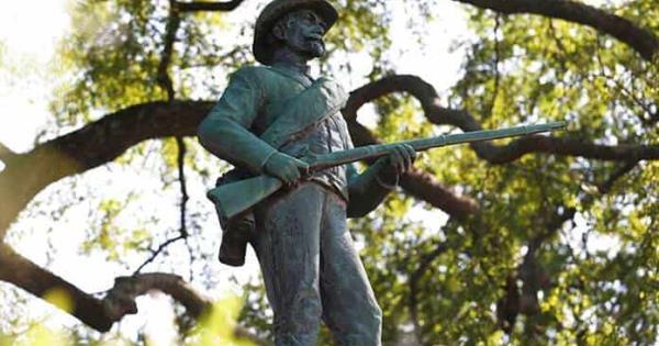 Hoy, la retirada de la estatua del soldado confederado se llevó a cabo en un ambiente festivo entre las personas congregadas para asistir al acontecimiento, todas con máscaras y muchas de ellas bailando al son de la música que salía de unos altavoces.
