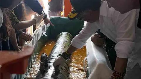 Bogotá, Col.- Diez años después del hallazgo del pecio del galeón español San José, una expedición científica del Gobierno colombiano retiró los primeros cinco objetos y fragmentos del navío que reposa en el mar Caribe, a unos 600 metros de profundidad, cerca de Cartagena de Indias, informó este jueves el Ministerio de las Culturas.