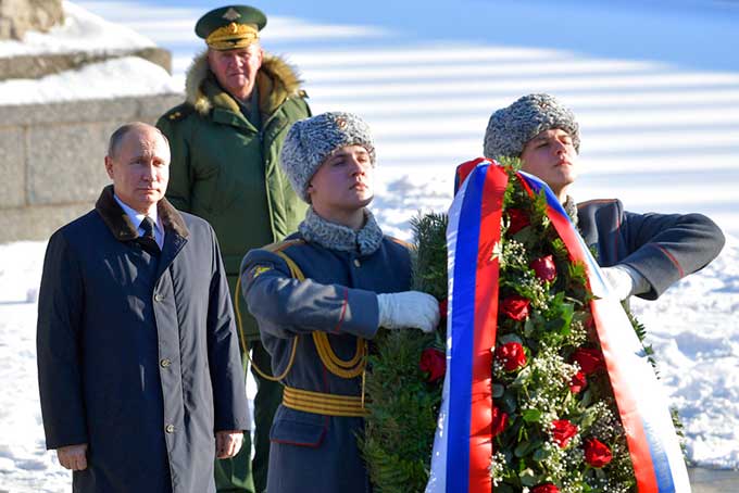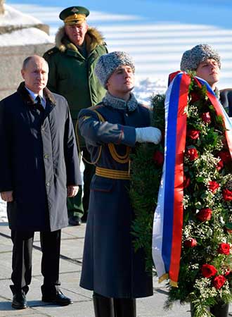 En medio de su campaña electoral, tras guardar un minuto de silencio en recuerdo de los soldados soviéticos caídos, departió con los veteranos de la considerada batalla más sangrienta de la historia, de los que menos de 300 aún viven en Volgogrado.