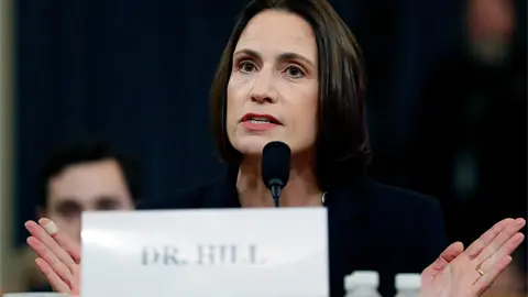 Trump envió a Hill, entonces su asesora principal sobre Rusia y Europa, a Moscú en abril de 2019 para entregar ese mensaje. Ella afirmó que les dijo a los funcionarios rusos "Ucrania y Venezuela no están relacionadas entre sí".