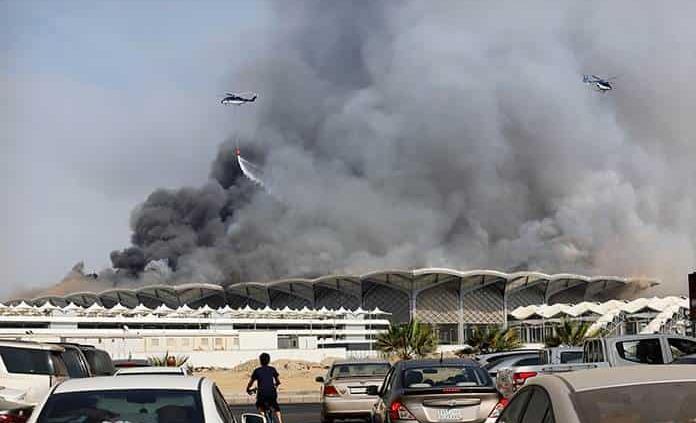 En la misma red social, la Defensa Civil de Arabia Saudí informó de que hasta el momento los bomberos han podido controlar el 50 % del fuego.
