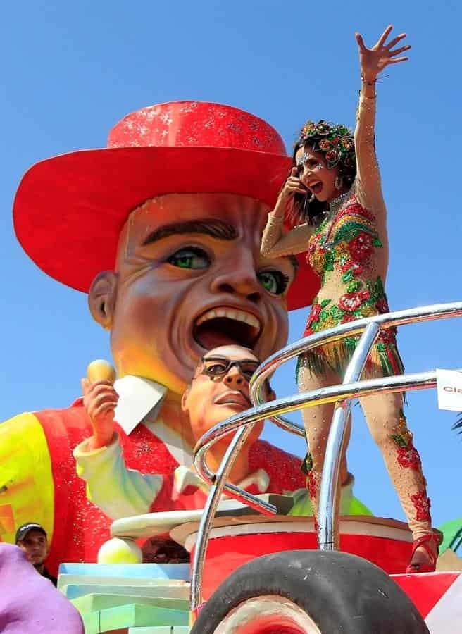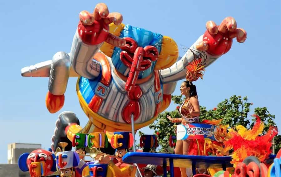 La reina del Carnaval, Isabella Chams, las reinas populares, modelos, actrices y cantantes fueron aplaudidos al pasar montados en las carrozas con sugestivos nombres como "Ciudad Marimonda", "Ruta Picotera", "Macchina Venecia", "Flow Puloy", "Suéltate Gorila", "Poesía Real" y "La Pachanguera".