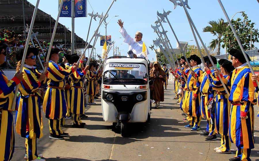 En el arranque del Carnaval, que culminará el próximo martes, destacó, además, entre la multitud un papa Francisco que, desde su "papamovil" y acompañado por más de 50 monjas bailando música tropical, arrancó las carcajadas de miles personas que se apostaron a lado y lado del "Cumbiódromo", como se conoce la Vía Cuarenta, escenario del desfile.