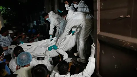 En el Hospital Nacional de Galle, los cuerpos de los marineros iraníes llegaban en camiones y estaban siendo almacenados en una morgue improvisada. Personal policial y naval proporcionó seguridad al hospital, mientras los trabajadores descargaban los cuerpos fuera de la vista.