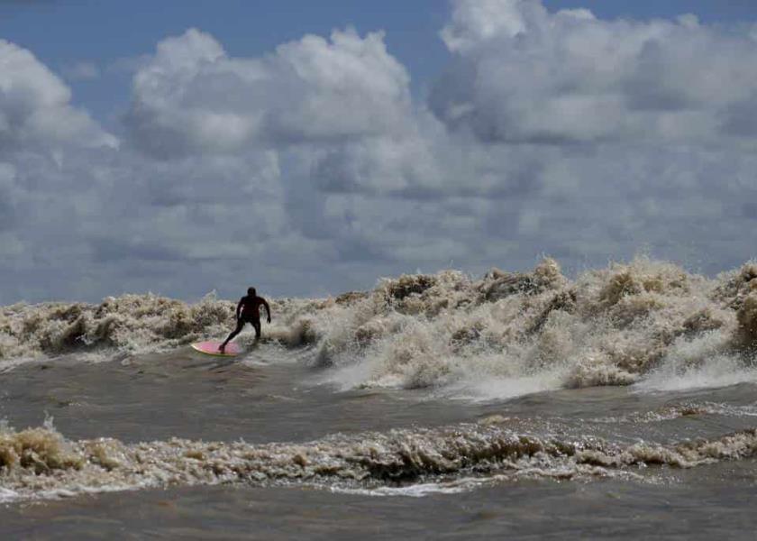 Surfistas montan larguísimas olas en desembocadura del río Amazonas