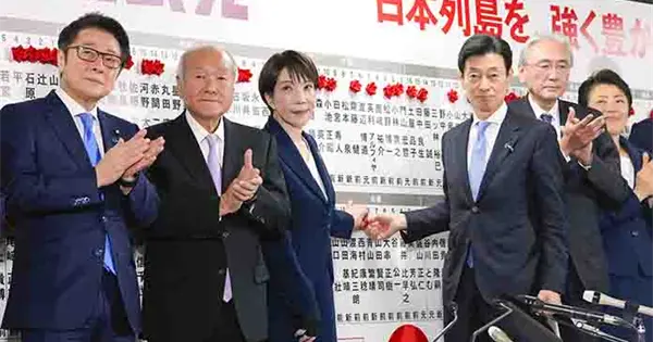 NHK afirmó que el Partido Liberal Democrático (PLD) de Takaichi y su socio de gobierno, el Partido de la Innovación de Japón (Ishin), se asegurarían al menos 310 escaños de los 465 en liza en la Cámara Baja, la más importante de las dos que conforman el Parlamento.