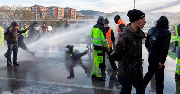 En la protesta de esta tarde se vivieron algunos momentos de tensión cuando decenas manifestantes se sentaron en el suelo para impedir el paso del contingente policial o se enfrentaron a los agentes con petardos o insultándoles por el uso de agua a presión.