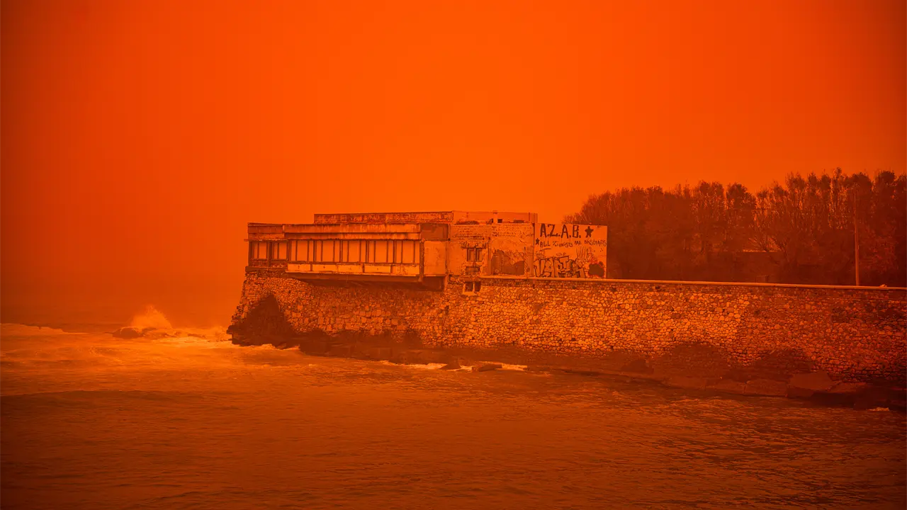 Los tonos rojos surrealistas del cielo recordaban escenas apocalípticas sobre Creta, donde la tormenta con vientos con fuerza de vendaval se combinó con una tormenta de polvo sahariano.