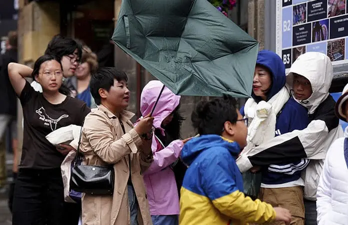 La tormenta azota en la época más concurrida del año para el turismo, con cientos de millas de personas acudiendo al Festival Fringe de Edimburgo y otros festivales de arte. El Edinburgh Military Tattoo, una de las mayores atracciones turísticas de la ciudad, canceló el evento al aire libre programado para el lunes de largas filas de gaiteros y tamborileros en el Castillo de Edimburgo.