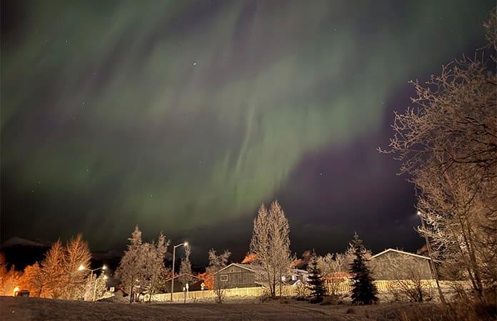 El avistamiento de las auroras boreales es más común cerca de los polos, donde las partículas cargadas del sol interactúan con la atmósfera de la Tierra.