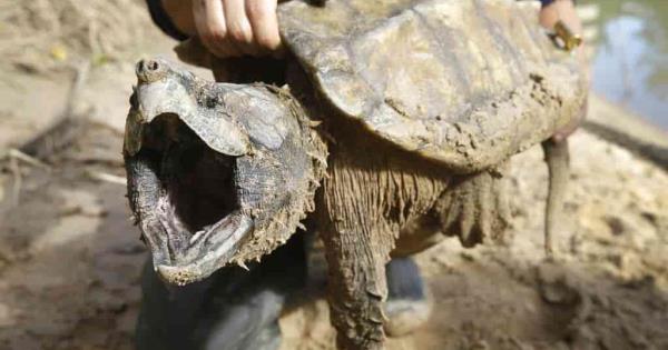 Las tortugas caimán pueden vivir hasta 80 años, y se sabe de machos que pesan hasta 113 kilogramos (249 libras) con caparazones de hasta 74 centímetros (29 pulgadas) de longitud. Sus mandíbulas tienen la fuerza suficiente para romper huesos.