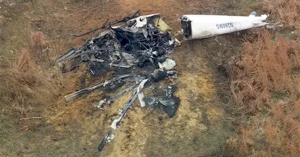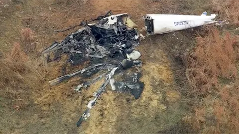 Investigadores de la Junta Nacional de Seguridad en el Transporte de Estados Unidos (NTSB) analizaron la escena el lunes y determinaron que el campo de escombros tiene aproximadamente 91 metros (100 yardas) de largo y contiene partes de los rotores principales y de cola, dijo un portavoz. Se tiene previsto que ambos helicópteros sean retirados el martes y trasladados a otro lugar para una revisión adicional.