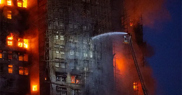 Cientos de residentes fueron evacuados cuando el incendio se propagó por siete edificios de apartamentos de gran altura en un complejo habitacional en el distrito de Tai Po, un suburbio en los Nuevos Territorios. Al menos otras 29 personas permanecían hospitalizadas.