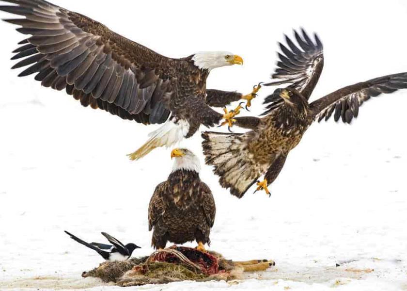 Al menos 13 águilas calvas probablemente sufrieron envenenamiento al consumir carroña de animales sacrificados que fueron arrojados indebidamente en un relleno sanitario de Minnesota; tres de las aves han muerto.