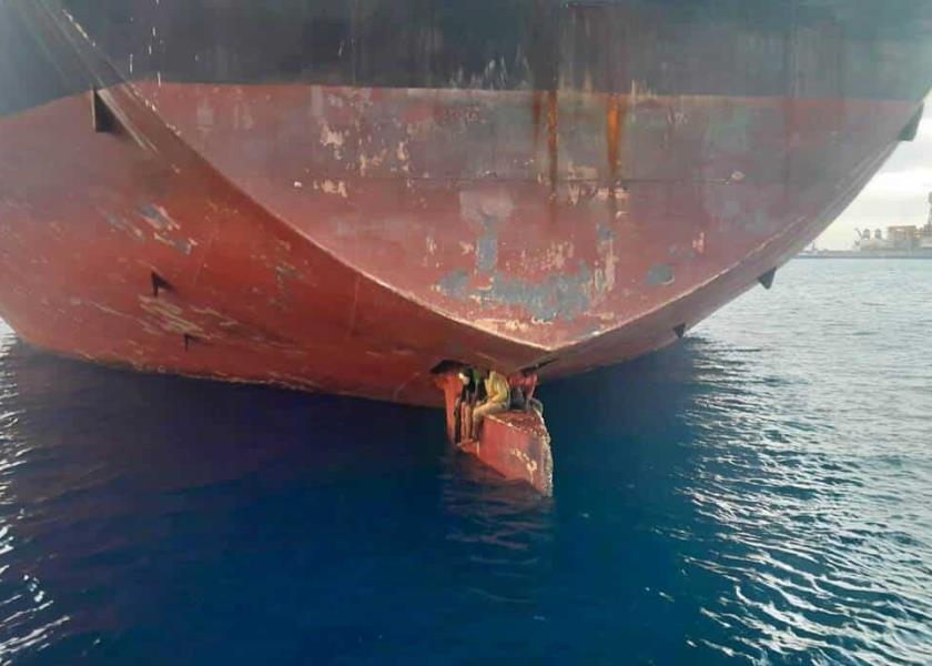 Además, los equipos de salvamento marítimo españoles han aclarado que solo en el puerto de Las Palmas hay cinco precedentes desde 2018 de polizones que han llegado a tierra en ese mismo hueco sobre el timón.