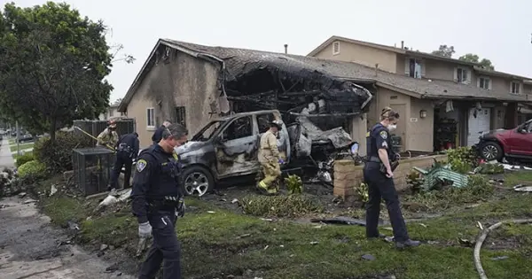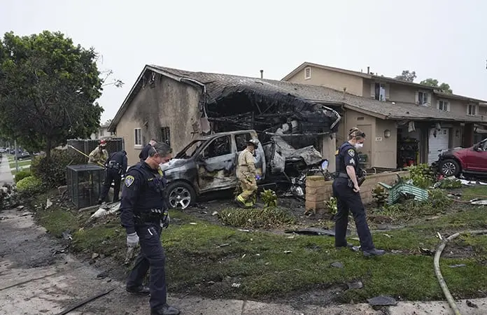La aeronave se estrelló a primera hora del jueves en un vecindario de viviendas de la Marina de Estados Unidos en medio de una densa neblina, provocando incendios en al menos una residencia y varios vehículos que se encontraban estacionados en la calle.