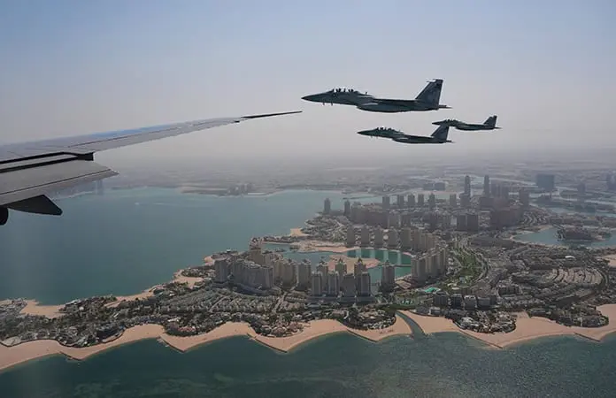 Al igual que Arabia Saudí un día antes, Qatar no esperó a que Trump aterrizara para impresionarlo con una escolta de aviones de combate.