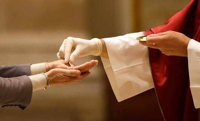 Entre estas disposiciones se señala que durante el rito de la comunión el sacerdote deberá usar guantes monouso, además de mascarilla cubriendo boca y nariz, y deberán dar la hostia consagrada sin entrar en contacto con las manos de los fieles.