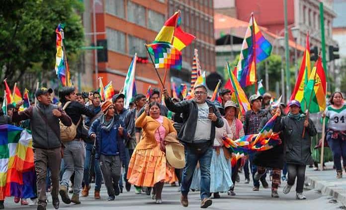 "¡La whipala se respeta!" coreaba una multitud que se organizó en El Alto, la ciudad del altiplano vecina de La Paz, con innumerables enseñas cuadriculadas y multicolores que se asocian con centenarias luchas indígenas.