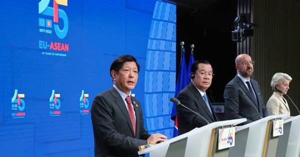 “La mayoría de los miembros condenaron enérgicamente la guerra en Ucrania”, señala el texto en el apartado que hace referencia a los asuntos regionales e internacionales que la UE y la ASEAN abordaron en su cumbre, la primera que realizan y que ha servido para conmemorar 45 años de relaciones diplomáticas entre las dos regiones.