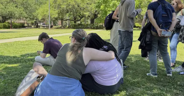El estudiante de tercer año Joshua Sirmans, de 20 años de edad, estaba en la biblioteca principal cuando se activaron las alarmas. Los policías lo escoltaron a él y a otros estudiantes afuera de la biblioteca con las manos sobre la cabeza, narró.
