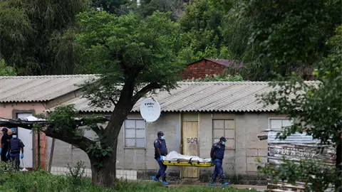 "Nos informaron que al menos tres hombres armados no identificados entraron en este albergue donde un grupo de personas estaba bebiendo y comenzaron a disparar al azar", dijo la portavoz de la policía, Athlenda Mathe, a la emisora nacional SABC. Añadió que las autoridades aún desconocen el motivo de los asesinatos. El tiroteo se registró alrededor de las 4:15 de la mañana, dijo, pero la policía fue alertada hasta a las 6:00 de la mañana.
