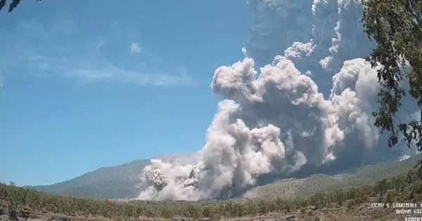 La Agencia de Geología de Indonesia registró una avalancha de nubes de gas ardiente mezcladas con rocas y lava que recorrieron hasta 5 kilómetros (3 millas) por las laderas de la montaña de 1.584 metros (5.197 pies). Observaciones de drones mostraron lava llenando el cráter, lo que indicaba un movimiento profundo de magma que provocó terremotos.