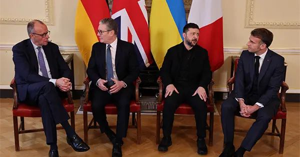 El primer ministro británico, Keir Starmer, mantuvo conversaciones con Zelenski, el presidente de Francia, Emmanuel Macron, y el canciller alemán, Friedrich Merz, en su residencia oficial en el número 10 de Downing Street, para intentar fortalecer la posición de Ucrania en medio de la creciente impaciencia del presidente estadounidense Donald Trump.