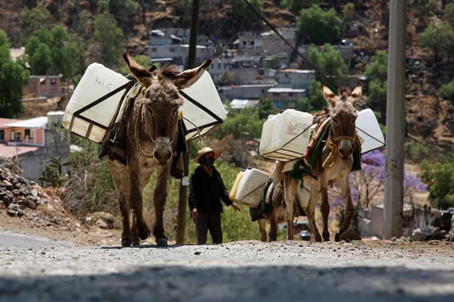 Sin agua potable ni drenaje, en esta comunidad varias personas se dedican todos los días al acarreo de agua a lomo de burro.
