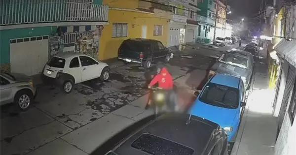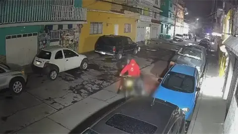 Enseguida, los dos hombres ordenan al tercer acompañante, que caminaba metros atrás, que suba a la motocicleta, para emprender la huida.