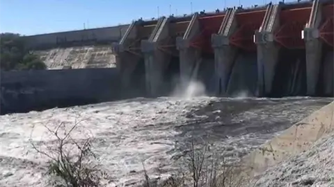 Monterrey, NL.- En medio de un hermetismo por parte de la Comisión Nacional del Agua, una compuerta de la Presa El Cuchillo, en Nuevo León, comenzó a liberar agua para iniciar el pago de la deuda hídrica de México con Estados Unidos.