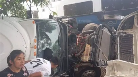 Tráiler impacta a Tren Interoceánico en Chiapas