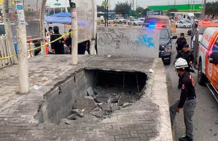 Por las precipitaciones y humedad de los últimos días, se informó que el concreto colapsó con personas que estaban esperando la unidad pública.