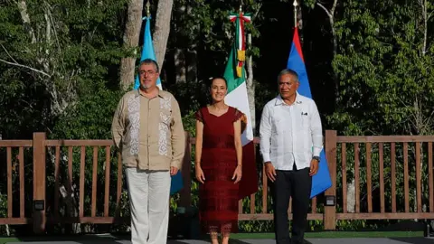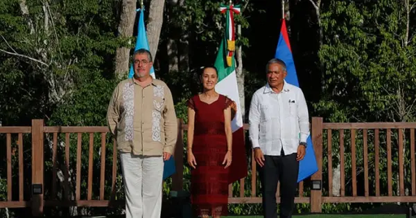 En Calakmul, Campeche, la Jefa del Ejecutivo federal destacó que es la primera vez que los tres mandatarios se reúnen para abordar este tema con un acuerdo que calificó como “histórico y hermoso”, y anunció la segunda fase del programa Sembrando Vida en Guatemala y Belice.